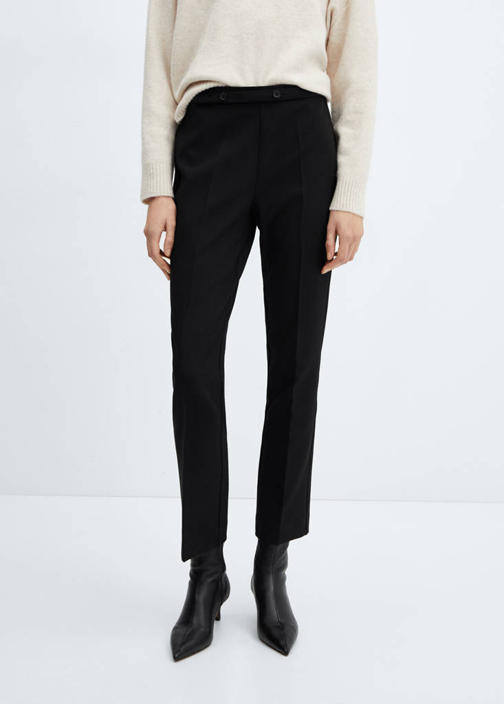 Gerades Design. Mittlere Bundhöhe. Gürtelschlaufen. Bund mit Gummizug. Unsichtbarer seitlicher Reißverschluss. Abnehmbarer Gürtel. Verstellbarer Gürtel. Büro-Looks