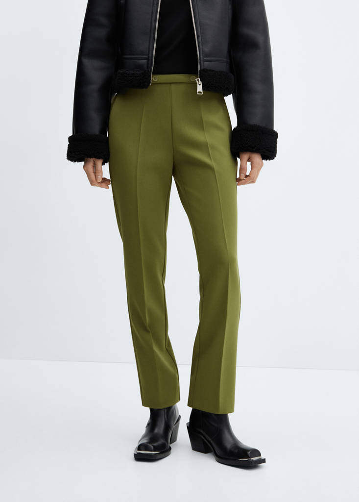 Gerades Design. Mittlere Bundhöhe. Gürtelschlaufen. Bund mit Gummizug. Unsichtbarer seitlicher Reißverschluss. Abnehmbarer Gürtel. Verstellbarer Gürtel. Büro-Looks