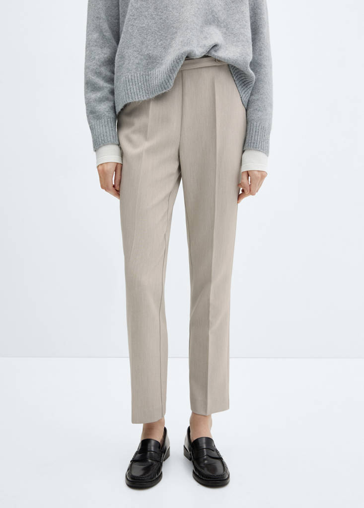 Gerades Design. Mittlere Bundhöhe. Gürtelschlaufen. Bund mit Gummizug. Unsichtbarer seitlicher Reißverschluss. Abnehmbarer Gürtel. Verstellbarer Gürtel. Büro-Looks