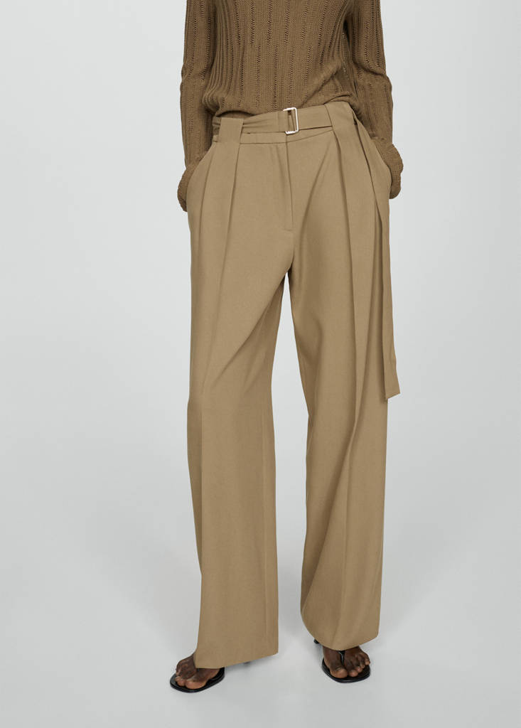 Mittlere Bundhöhe. Langes Design. Gerades Design. Zwei seitliche aufgesetzte Taschen. Zwei Leistentaschen hinten. Gürtelschlaufen. Verdeckter Knopf-, Haken- und Reißverschluss. Gürtel mit Schnallenverschluss. Bundfalten