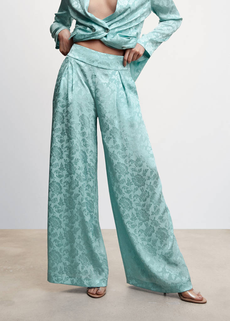Jacquard. Satin. Palazzo-Design. Langes Design. Hoher Sitz. Zwei Seitentaschen. Seitlicher Reißverschluss. Party- und Zeremonie-Kollektion