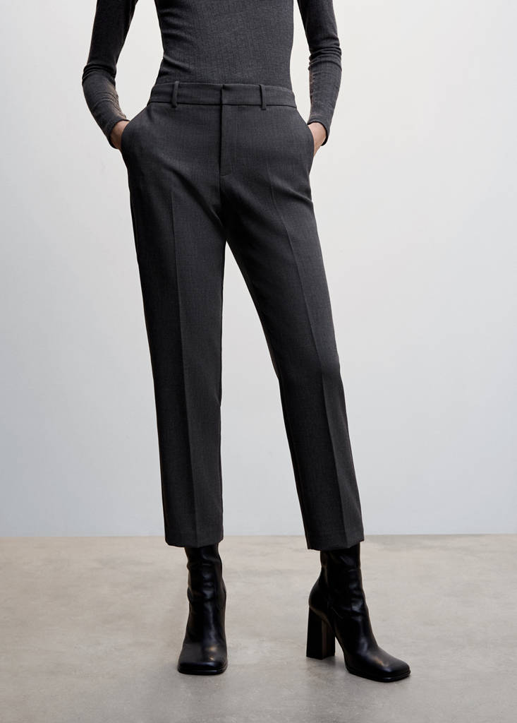 Fließender Stoff. Gerades Design. Langes Design. Mittlerer Sitz. Verdeckter Knopf-, Haken- und Reißverschluss. Gürtelschlaufen. Seitentaschen. Zwei Paspeltaschen hinten. Frontale Zierfalten. Total Look
