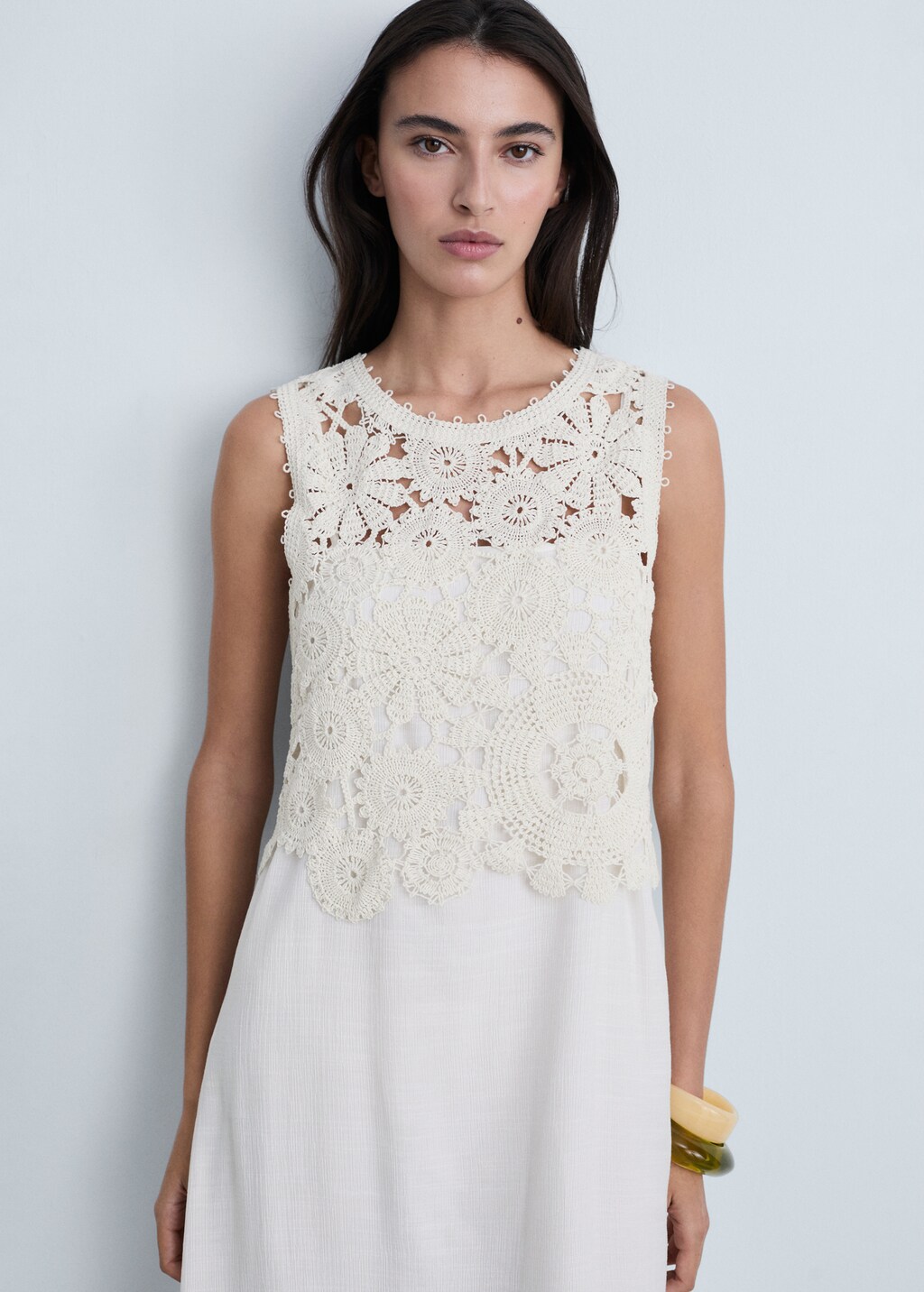 Gerades Design. Midi-Design. Oberteil in Häkel-Optik. Rundhalsausschnitt. Ärmellos. Knopfverschluss hinten. Innenfutter. Ramadan-Kollektion.