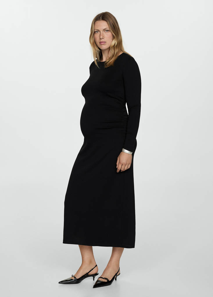 Feinstrick. Midi-Design. Rundhalsausschnitt. Lange Ärmel. Schlitzdetail auf der Rückseite. Umstandsmode. Wir empfehlen Ihnen, Ihre gewohnte Größe zu kaufen. Bieten Komfort und Bewegungsfreiheit. Tailliertes Design