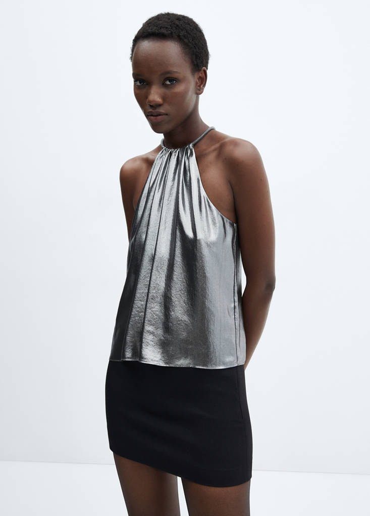Metallisiertes Top mit starrem Kragen