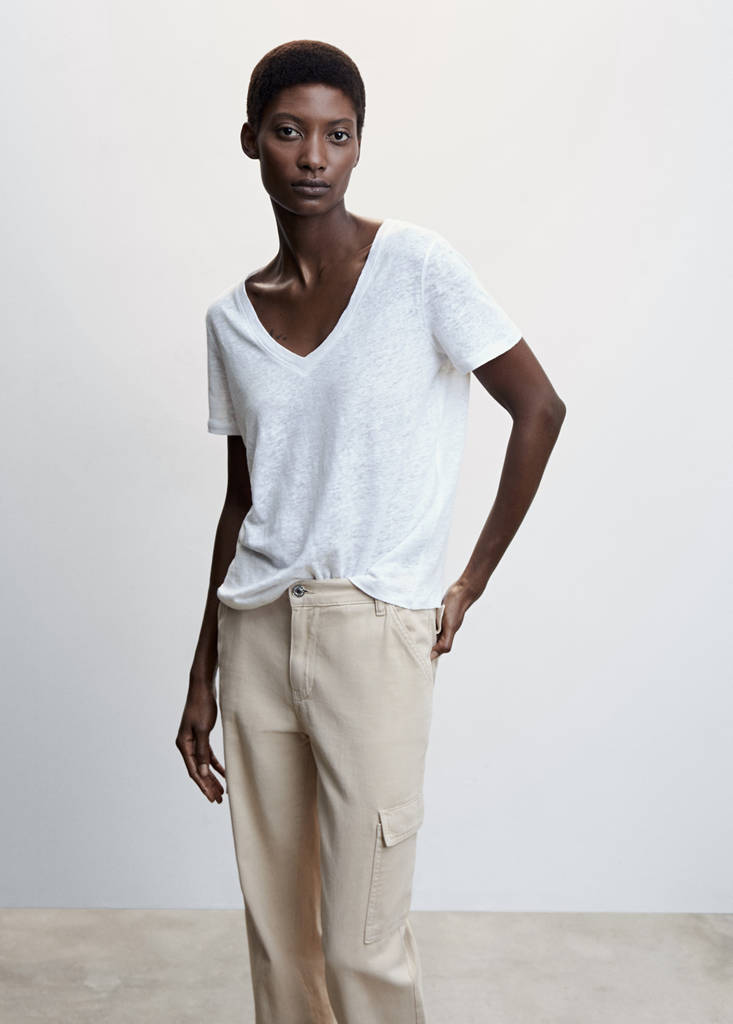 Leinen. Gerades Design. V-Ausschnitt. Kurze Ärmel. Plus erhältlich