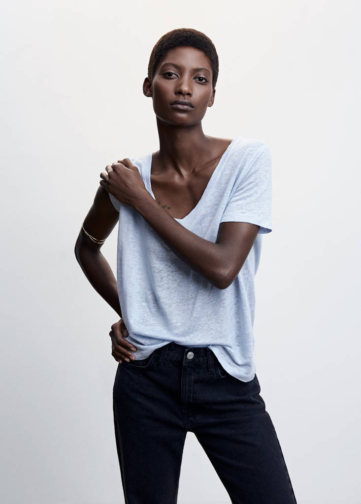 Leinen-T-Shirt mit V-Ausschnitt