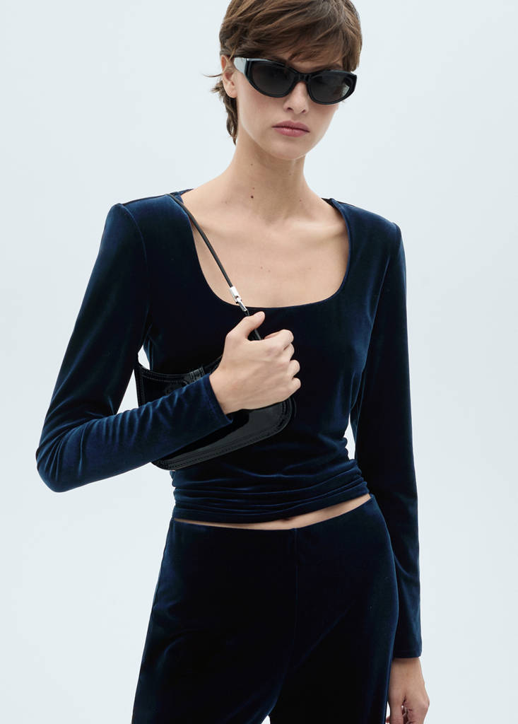 Ausgeschnittenes Samt-T-Shirt