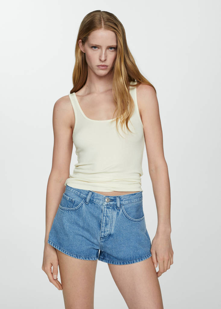 Maulbeerseiden-Mischgewebe. Rundstrickgewebe. Breite Träger. Tiefer Ausschnitt. Rückenausschnitt. Ohne Verschluss. Tailliertes Design