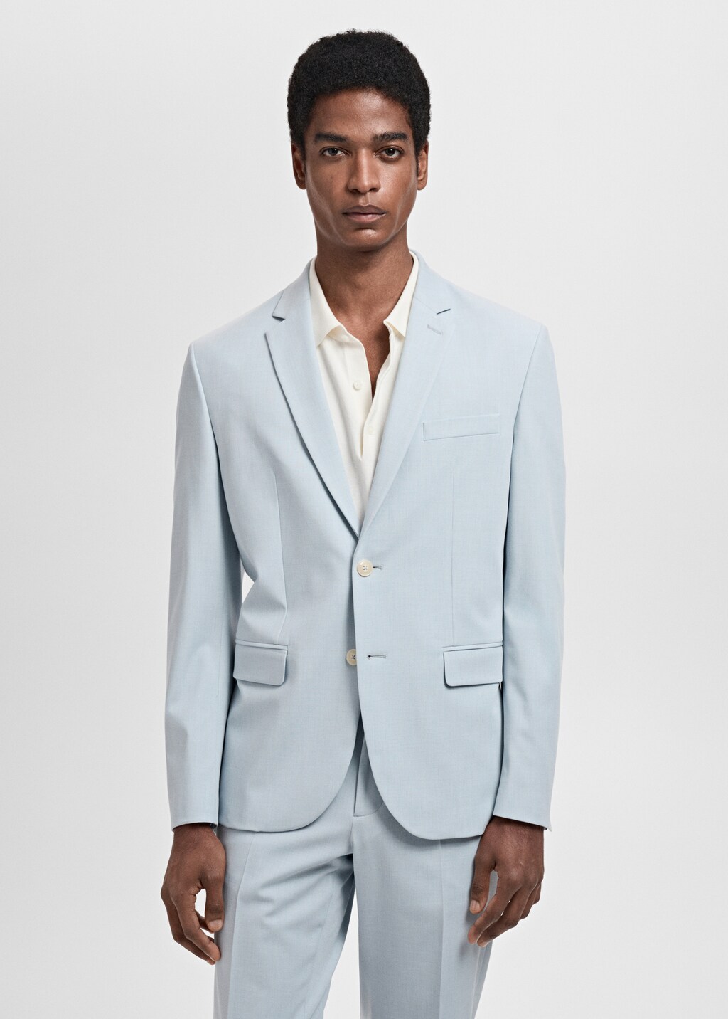 Slim Fit. Maßkollektion. Fallendes Revers und Knopfloch. Brustleistentasche. Vorderer Verschluss mit Knöpfen. Zwei Paspeltaschen und Pattentaschen vorne. Manschetten mit Knopfverschluss. Doppelter Rückenschlitz. Innenfutter. Innentasche.