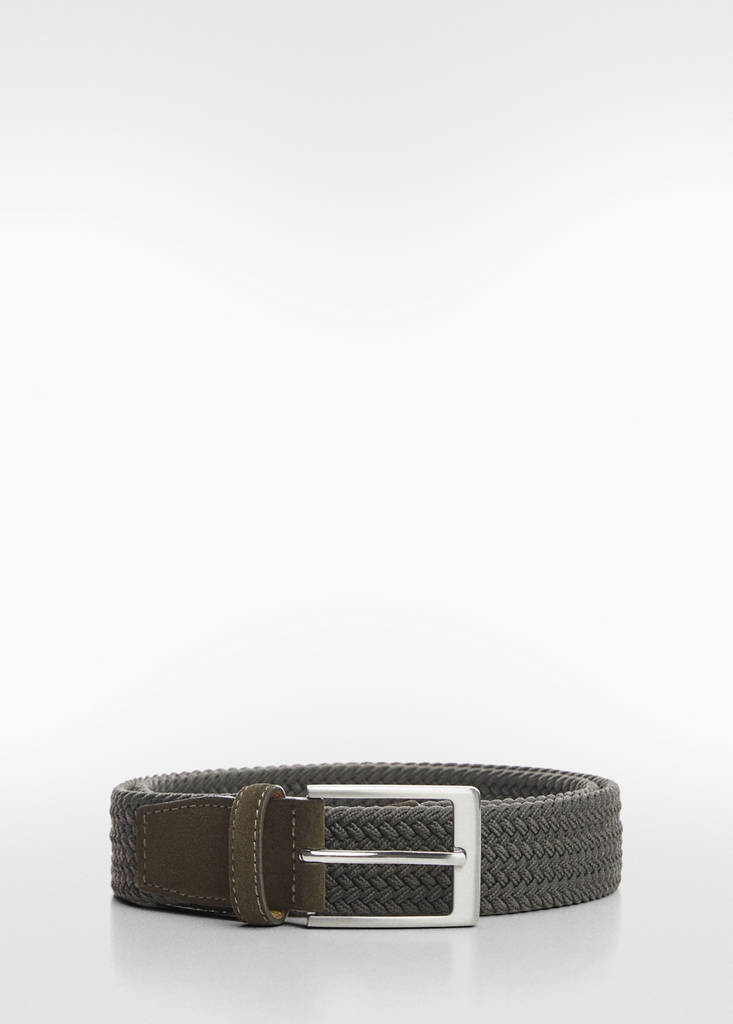 Gummizug für Halt und Tragekomfort. Lederabschlüsse. Metallschnalle