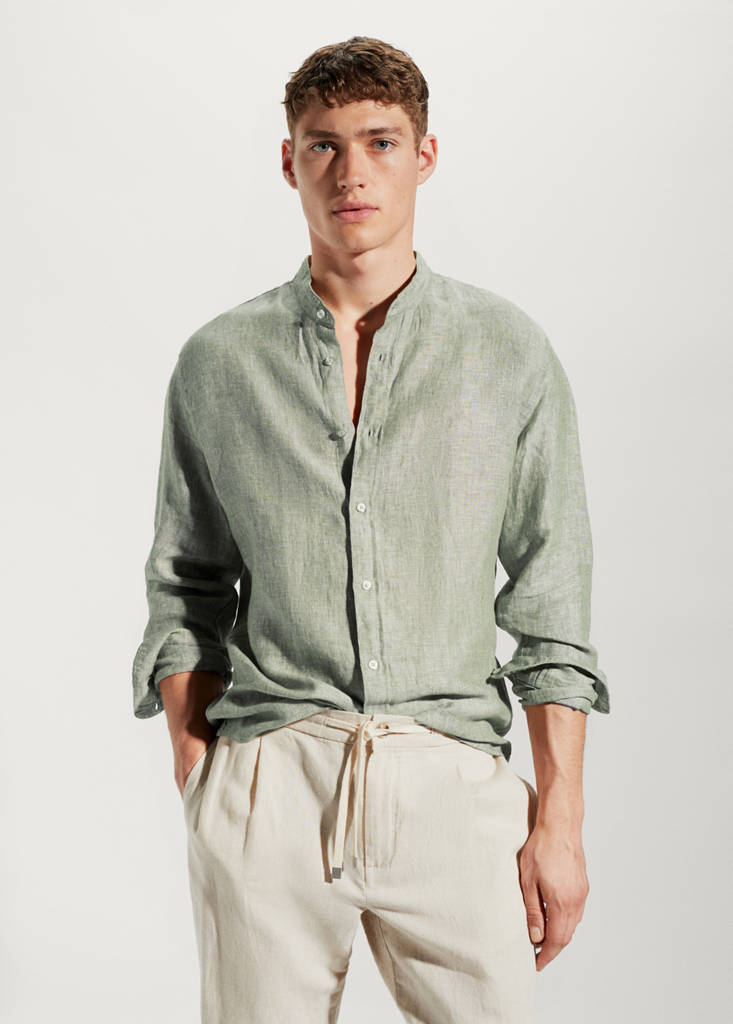 Hemd aus 100 % Leinen mit Mao-Kragen