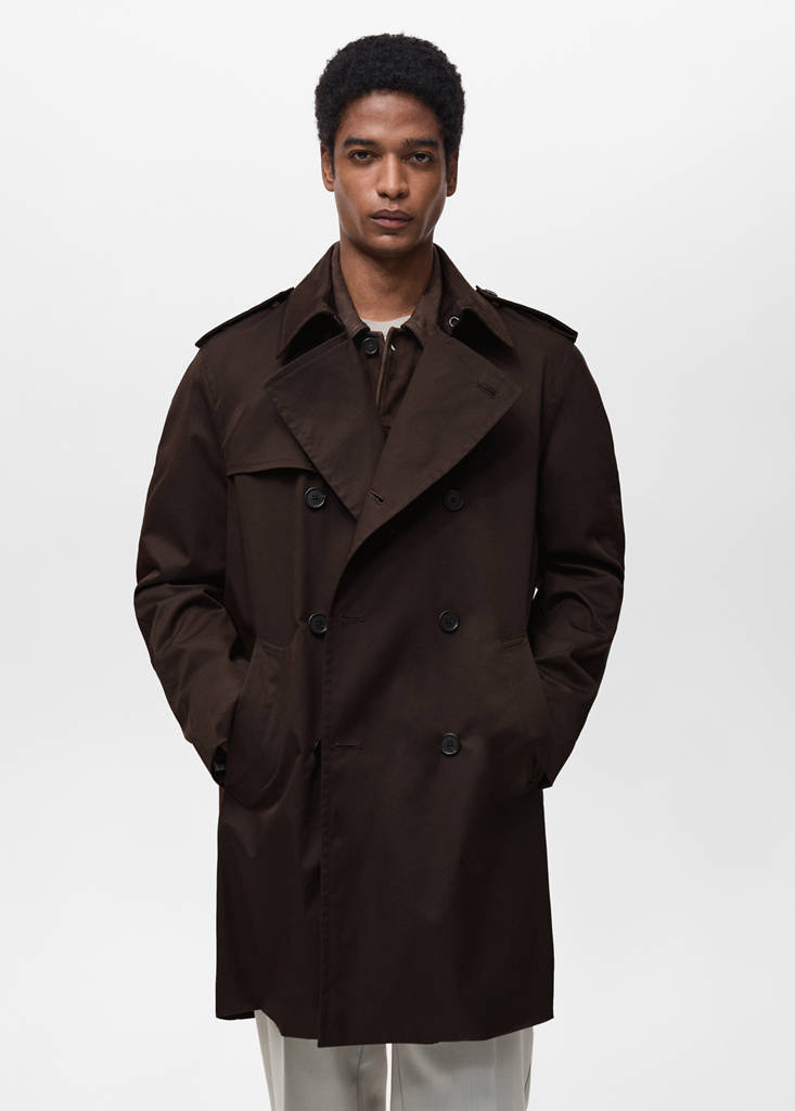 ESSENTIALS: Hergestellt, um zu halten. Wasserabweisend: Die strapazierfähige Oberfläche dieses Kleidungsstücks schützt vor leichtem Regen und weist den Kontakt mit Wasser und Regentropfen ab. Baumwollmischgewebe. Wasserabweisender Stoff. Überkreuztes Design mit doppelreihigem Frontverschluss. Innenfutter. Hemdkragen. Zierschlaufen im Schulterbereich. Fallendes Revers und Knopfloch. Metallhakenverschluss im Nacken. Abnehmbarer Gürtel. Innerer Gegenknopf für besseren Halt des Außenknopfes. Zwei vordere Paspeltaschen. Langer Ärmel mit verstellbaren Schlaufen. Eleganter und klassischer Stil