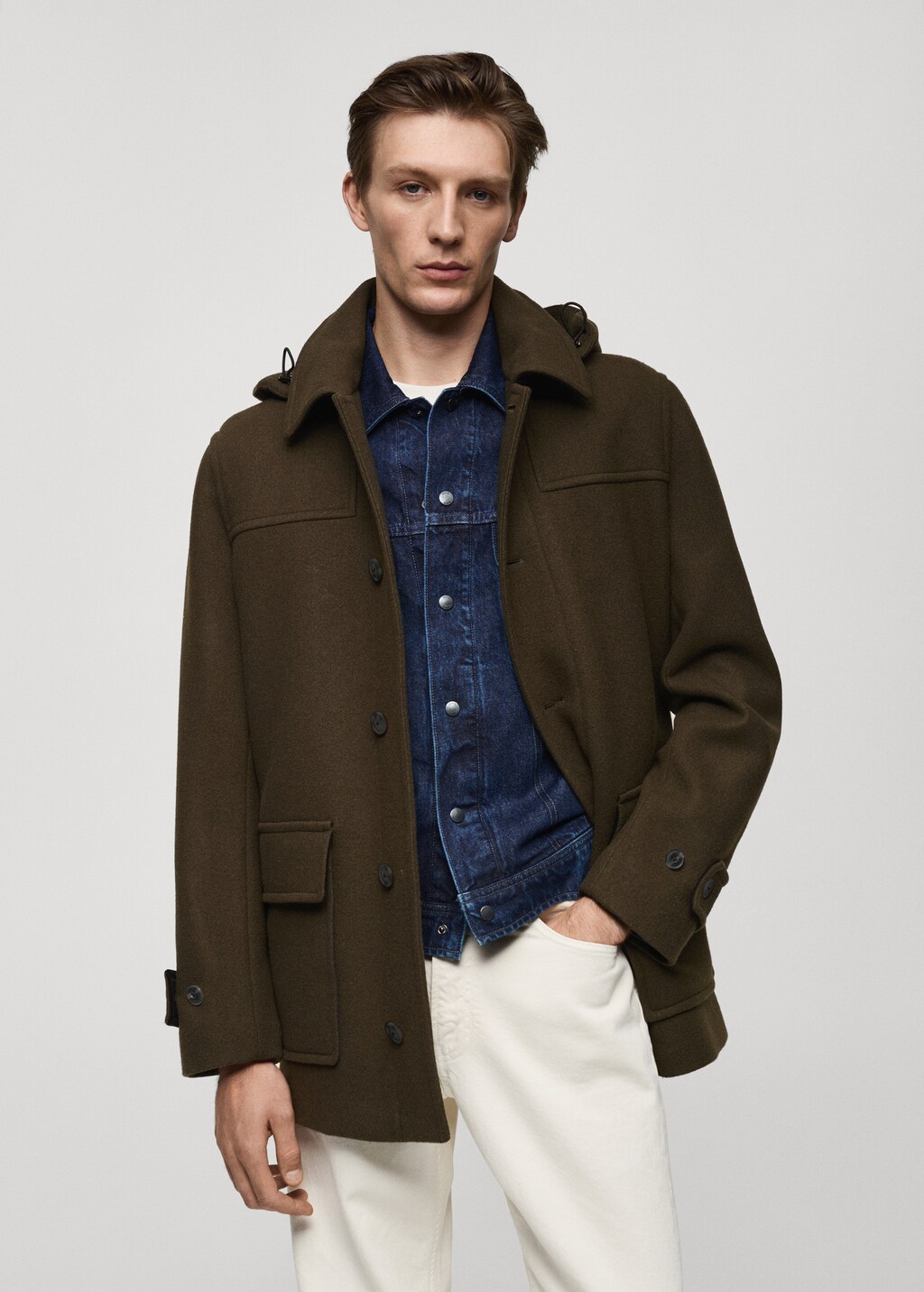 Wollmantel mit abnehmbarer Kapuze