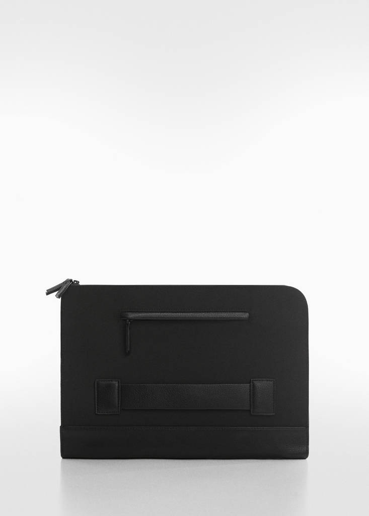 Hergestellt aus recyceltem Material. Doppeltes Hauptfach mit Reißverschluss. Kleine Tasche mit frontalem Reißverschluss. Seitlicher Schlaufengriff. 13,1" Laptop-Kapazität