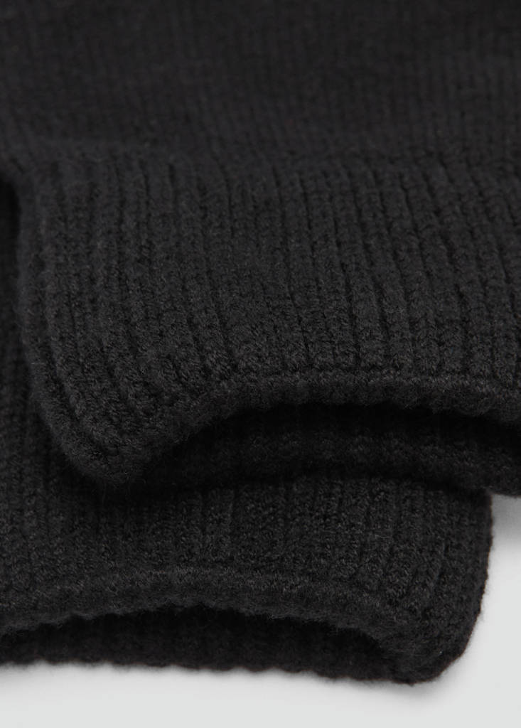 Strickstoff. Gerippte Abschlüsse. Zweifarbiges Detail an den Fingerspitzen