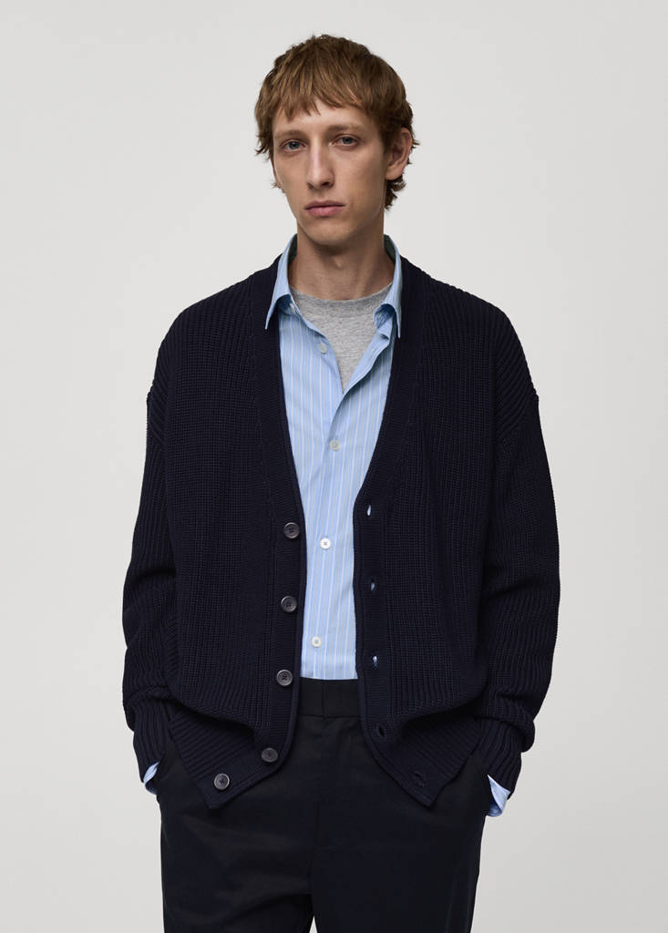 Relaxed Fit. 100% Baumwolle. Geripptes Design. Lange Ärmel mit elastischen Bündchen. Grobstrick. V-Ausschnitt mit Knopfverschluss