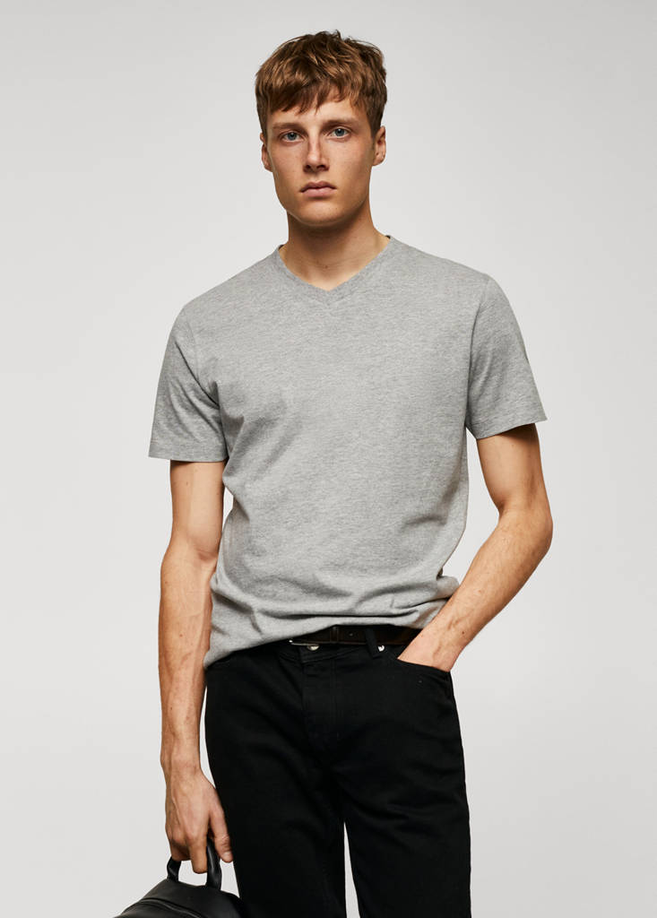 Basics-Kollektion. Bio-Baumwollstoff. Regular Fit. Leichte Baumwolle. V-Ausschnitt. Kurze Ärmel. Das Model trägt die Größe M. 100% Baumwolle. Standardlänge. Flache Struktur Leicht. Slim-Silhouette. Reverskragen Spitz. Kurze Ärmel. Print: ohne Muster. Fantasie: ohne Fantasie. Slim Fit. Standarddesign. Leichter Stoff