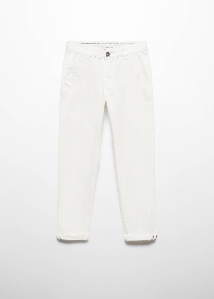 Kollektion für Partys, Feierlichkeiten und Kommunionen. Baumwolle. Basics-Kollektion. Gerades Design. Langes Design. Chinohose. Mittlere Bundhöhe. Slim Fit. Zwei seitliche Taschen. Reißverschluss und Knopfverschluss. Back to School
