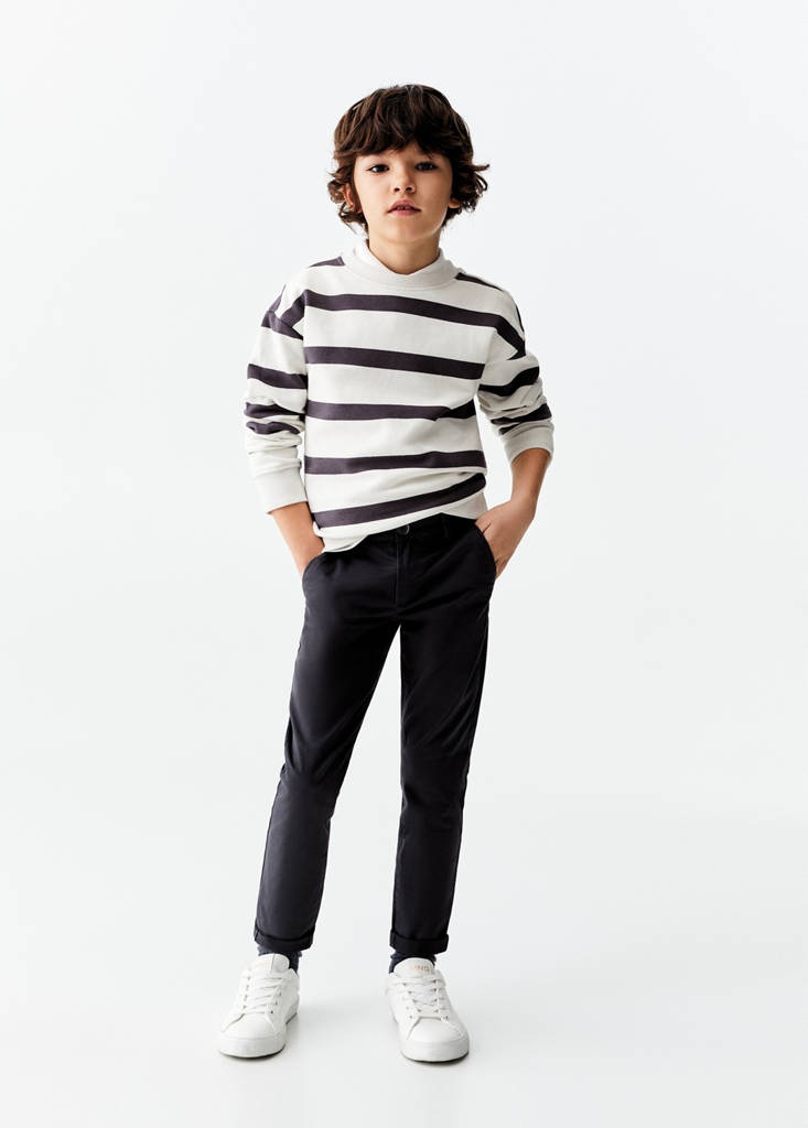 Kollektion für Partys, Feierlichkeiten und Kommunionen. Baumwolle. Basics-Kollektion. Gerades Design. Langes Design. Chinohose. Mittlere Bundhöhe. Slim Fit. Zwei seitliche Taschen. Reißverschluss und Knopfverschluss. Back to School