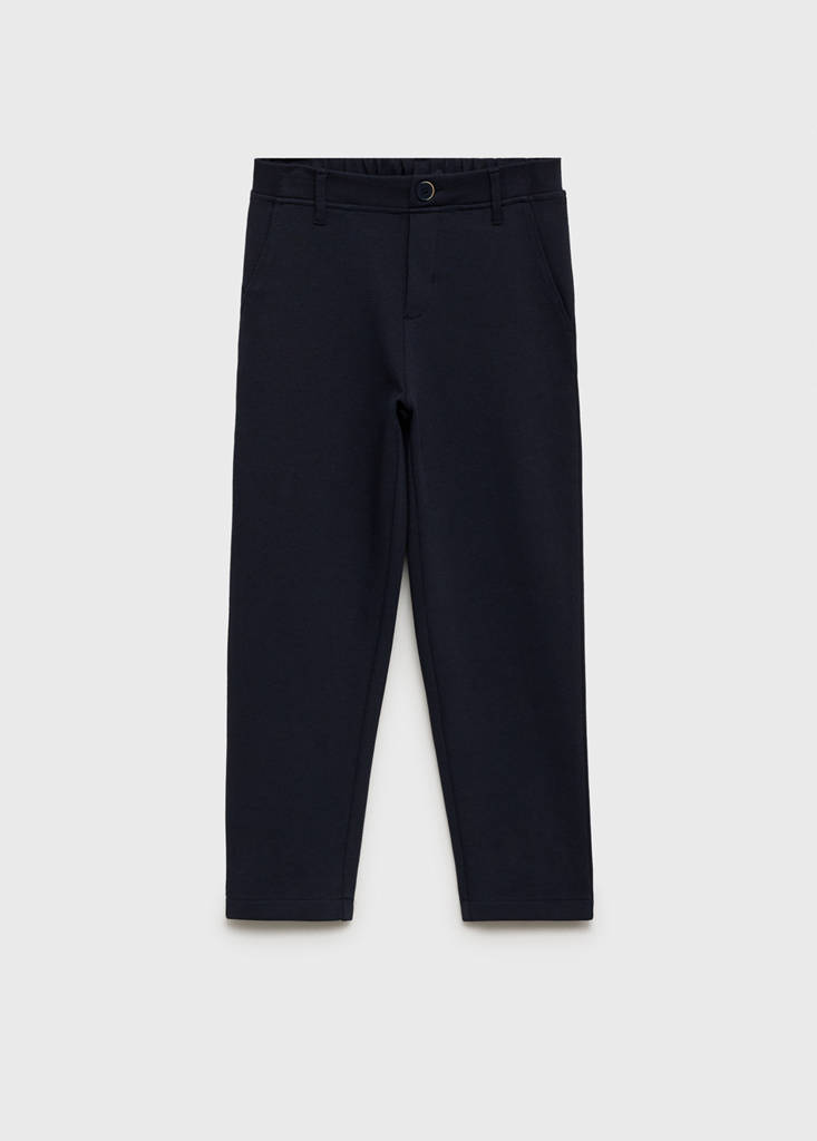 Langes Design. Slim Fit. Piqué-Stoff. Zwei Vordertaschen. Bund mit Gummizug. Zierknopf