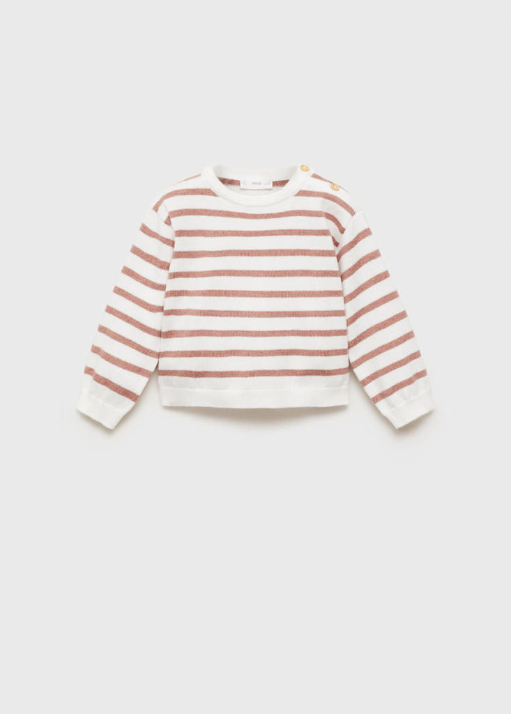 Baumwollstoff. Streifendesign. Gerippter Kragen, Bündchen und Saum. Knopfverschluss an der Schulter. Knöpfe mit Holz-Effekt. Set