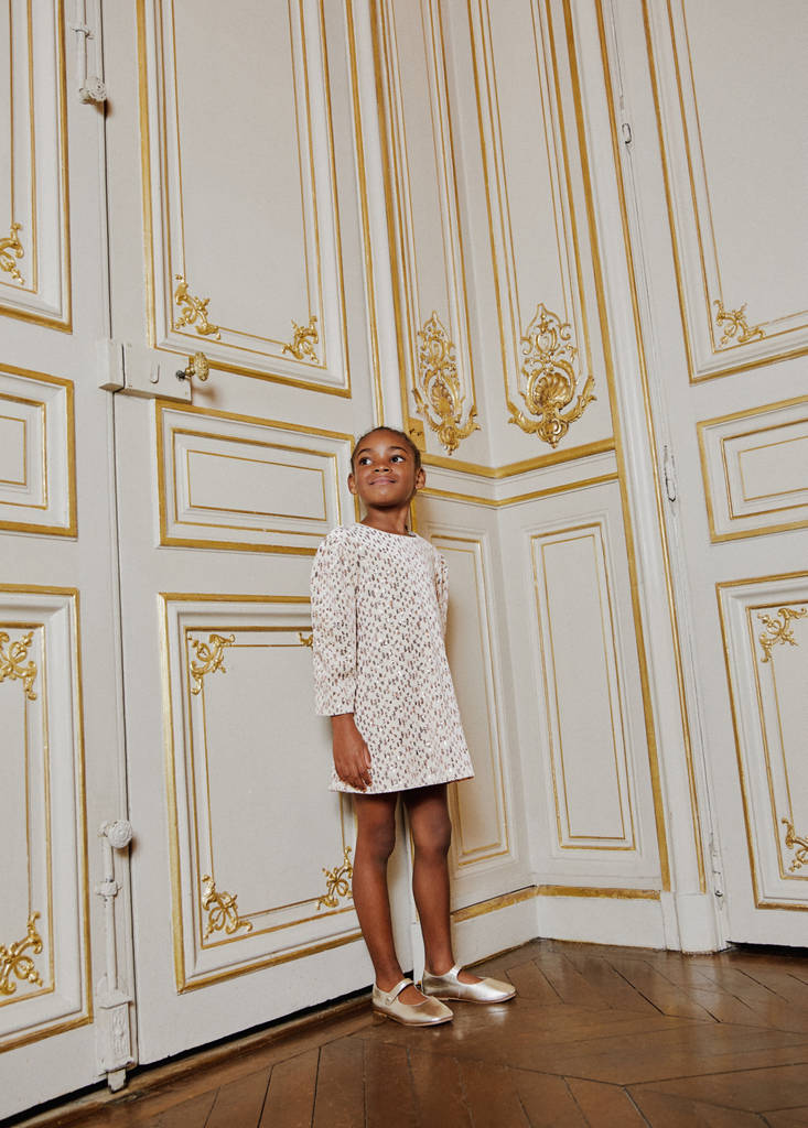 Kollektion für Partys, Feierlichkeiten und Kommunionen. Weihnachtskollektion. Zierapplikation mit Pailletten. Kurzes Design. Rundhalsausschnitt. Lange Ärmel. Rückwärtiger Verschluss. Knopfverschluss