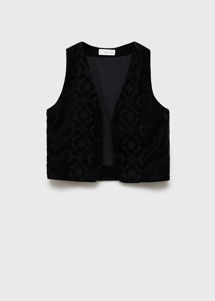 Stoff mit Baumwollanteil. Samt. Ärmellos. Gerades Design. V-Ausschnitt. Crop-Design. Gestickte Details