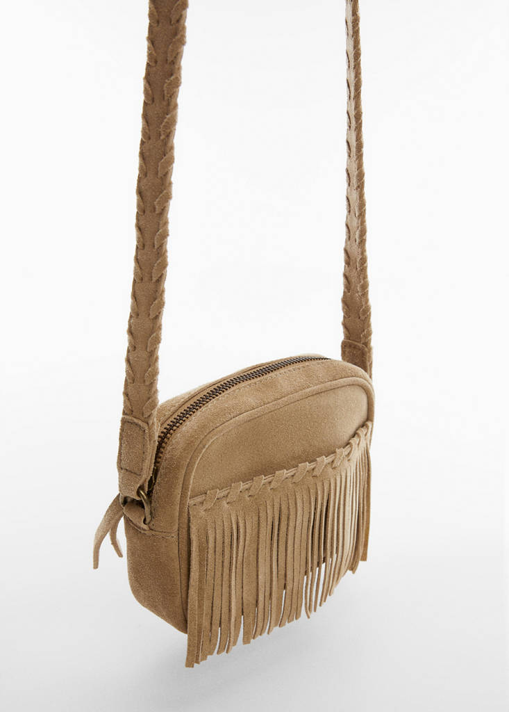 100 % Rindsleder. Kleine Größe. Innentasche. Fransenverzierung. Langer Flechthenkel. Reißverschluss