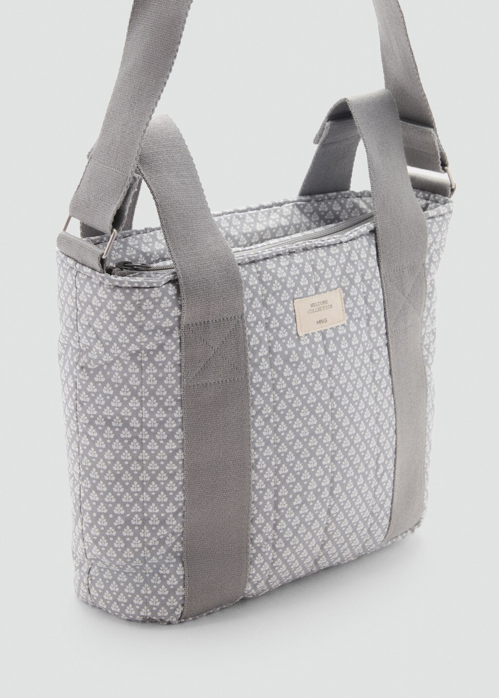 Innenfutter. Innentaschen. Bedrucktes Design. Zwei kurze Griffe. Langer, regulierbarer Riemen. Reißverschluss. Maternity Collection.