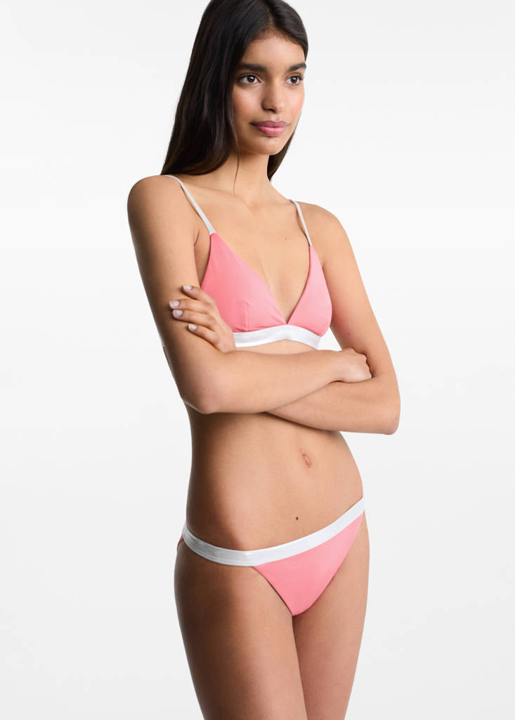Metallic-Detail. Triangel-Design. Klassischer Slip. V-Ausschnitt. Dünne Träger. Herausnehmbares Schaumstoffpolster. Schaumpolsterung. Metallclipverschluss