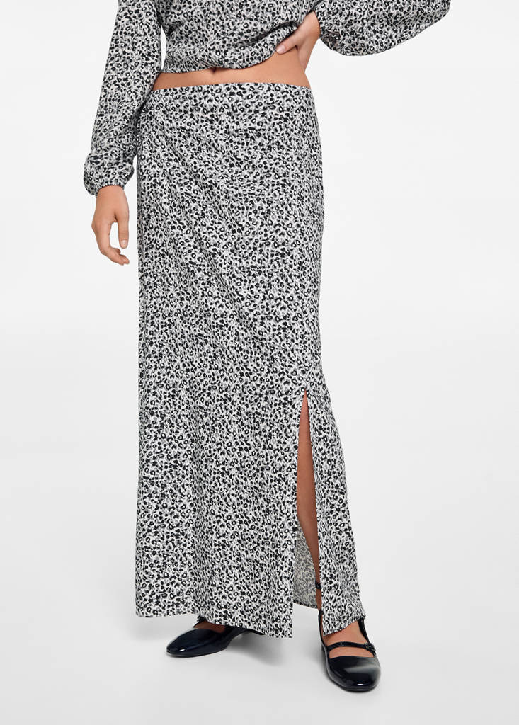 Gerades Design. Leoparden-Print. Bund mit Gummizug. Saum mit Seitenschlitzen. Midi-Design. Gewebe aus Viskose