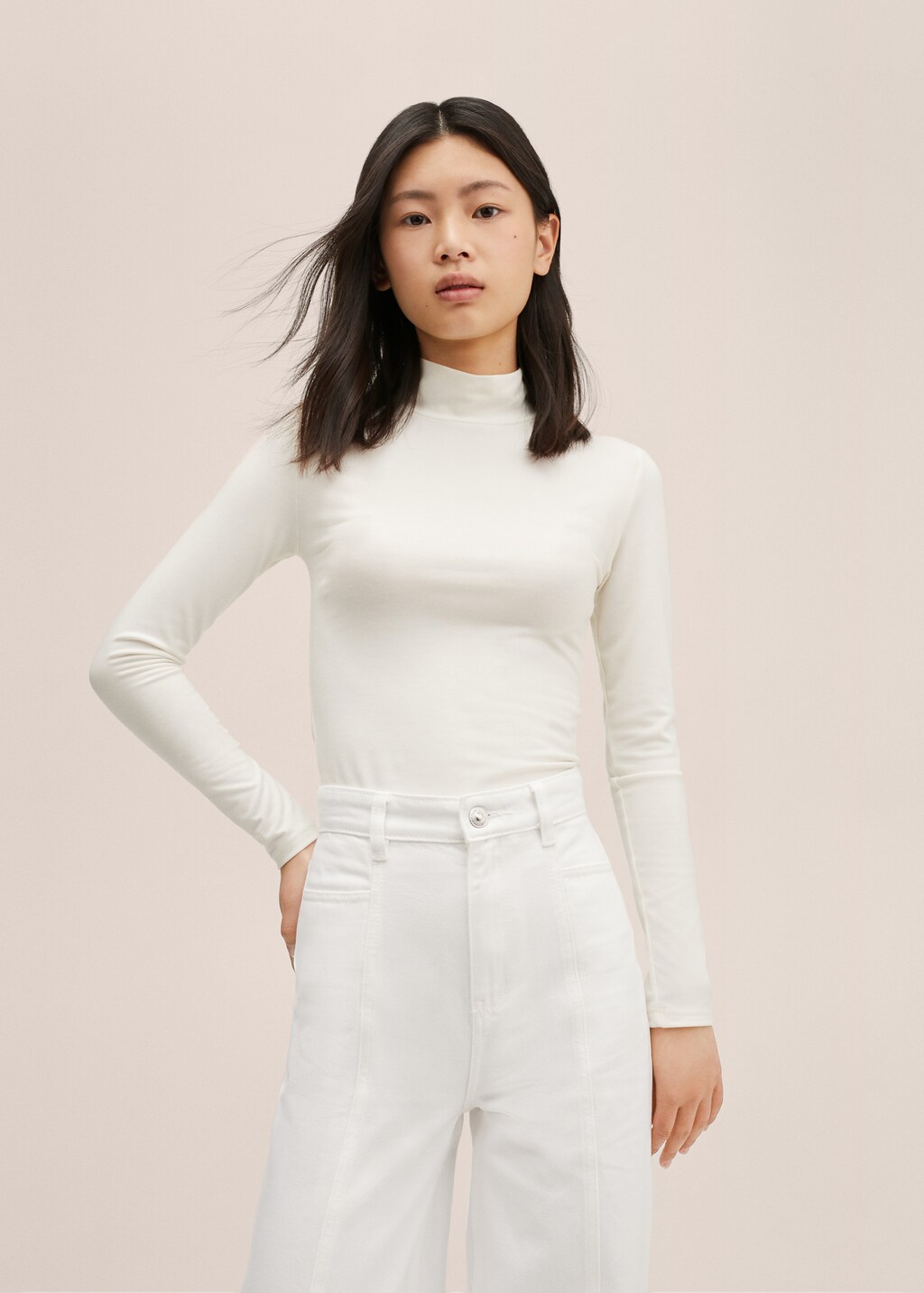 Stand collar T-shirtPrice historyInitial price struck through [€ 12.99 ]€ 12.99Current price [€ 9.99 ]€ 9.99-23%Select a colourWhiteSelect your sizeXS-SNot available. I want it!M-LNot available. I want it!Size guideNotify meDescriptionLight fabric. Fine knit fabric. Standard design. Slim fit. Turtleneck. Long sleeve. Teen collection.See detailsSize guideShare