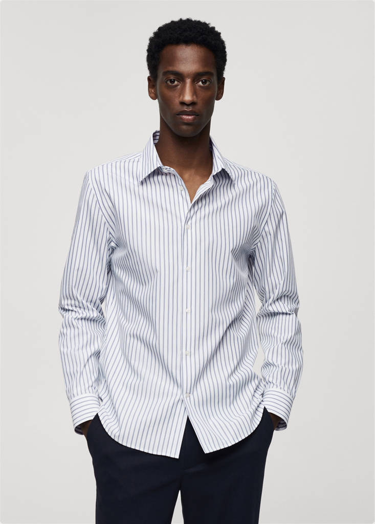 Performance Collection. Coolmax® is a special fabric that helps to expel moisture from the skin. In cold climates, keeps the body dry and warm, and in hot climates, it stands out for its lightness and freshness. Easy-care fabric. Anti-bacterial fabric. Slim fit. Vertical striped print. Shirt collar. Long sleeves with buttoned cuffs. Straight hem. Front closure with buttons