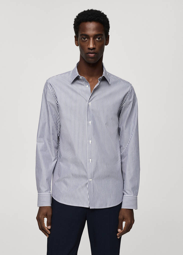 Performance Collection. Coolmax® is a special fabric that helps to expel moisture from the skin. In cold climates, keeps the body dry and warm, and in hot climates, it stands out for its lightness and freshness. Easy-care fabric. Anti-bacterial fabric. Slim fit. Vertical striped print. Shirt collar. Long sleeves with buttoned cuffs. Straight hem. Front closure with buttons