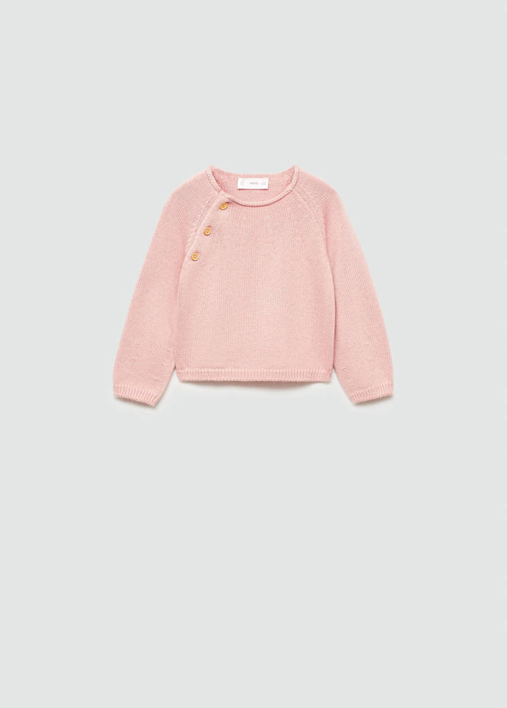 Buttons detail knit sweaterPrice historyInitial price struck through [€ 19,99 ]€ 19,99Second price struck through [€ 15,49 ]€ 15,49Current price [€ 6,99 ]€ 6,99-65%Select a colourPinkSelect your size1-3 months (62cm)Not available. I want it!3-6 months (68cm)Last few items!6-9 months (74cm)Not available. I want it!9-12 months (80cm)Not available. I want it!12-18 months (86cm)18-24 months (92cm)Last few items!DimensionsAddFine knit fabric. Straight design. Round neck. Closure on the shoulder. Long sleeves. Button up. Set available as total lookDetails, composition and careStore availabilityItem qualitiesRecycled cottonAt least 20%This fibre is obtained from pre- and post-consumer textile waste that is transformed into new fabrics.