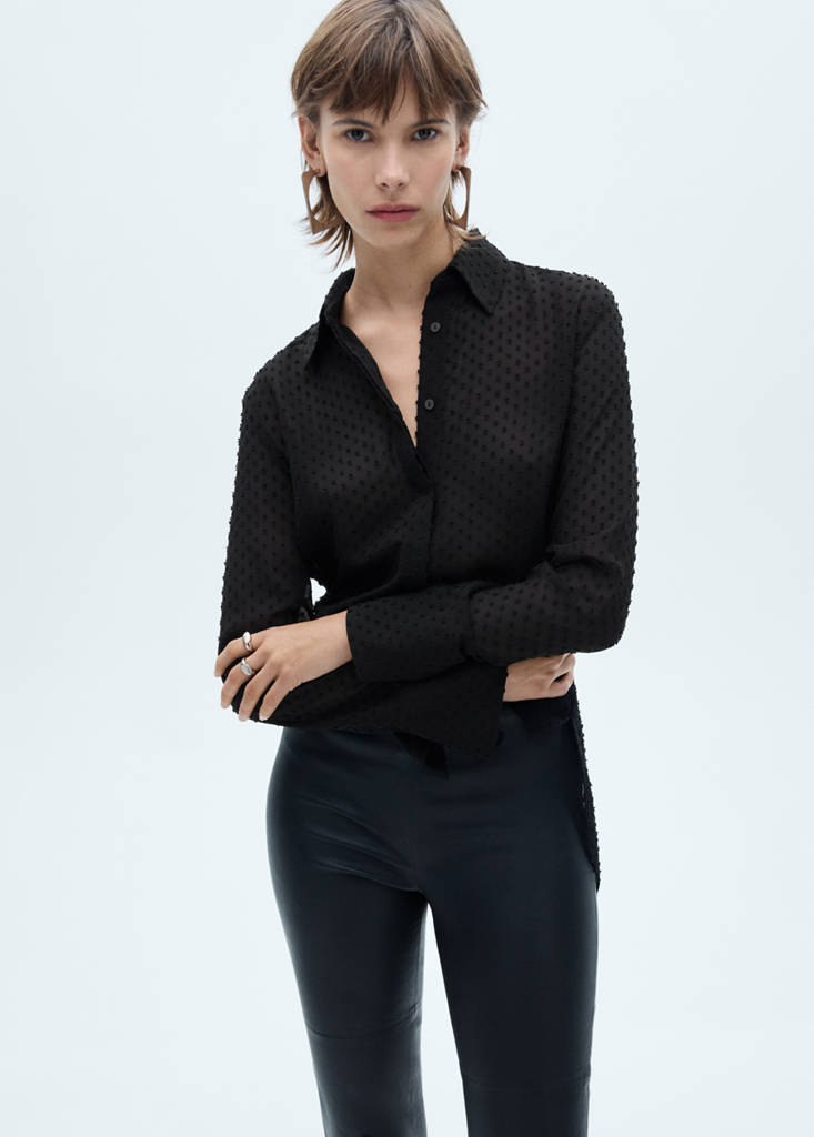 Plumeti fabric. Long design. Straight design. Shirt collar. Long sleeves with buttoned cuffs. Available Plus. Party, ceremony and communion collection. Concealed front button fastening