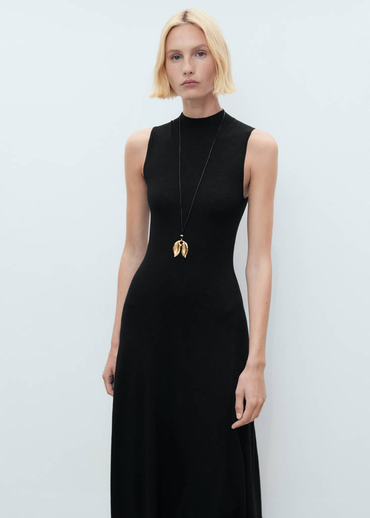 Fine knit fabric. Long design. A-line design. High collar. Sleeveless. Wide straps. No Fastening. This garment is part of our casual collection, designed to stylishly accompany you in your day-to-day life
