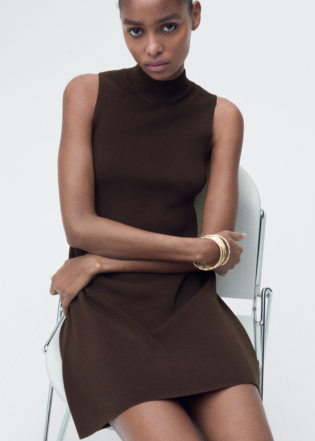 Perkins-neck knitted dressPrice historyInitial price struck through [€ 39.99 ]€ 39.99Second price struck through [€ 26.99 ]€ 26.99Current price [€ 22.99 ]€ 22.99-43%Select a colourChocolateSelect your sizeXXSNot available. I want it!XSLast few items!SMLXLXXLLast few items!1XLLast few items!2XLLast few items!3XLLast few items!4XLLast few items!Size guideAddDescriptionFine-knit fabric. Straight design. Short design. High collar. Sleeveless. No Fastening. Available Plus.See detailsShare