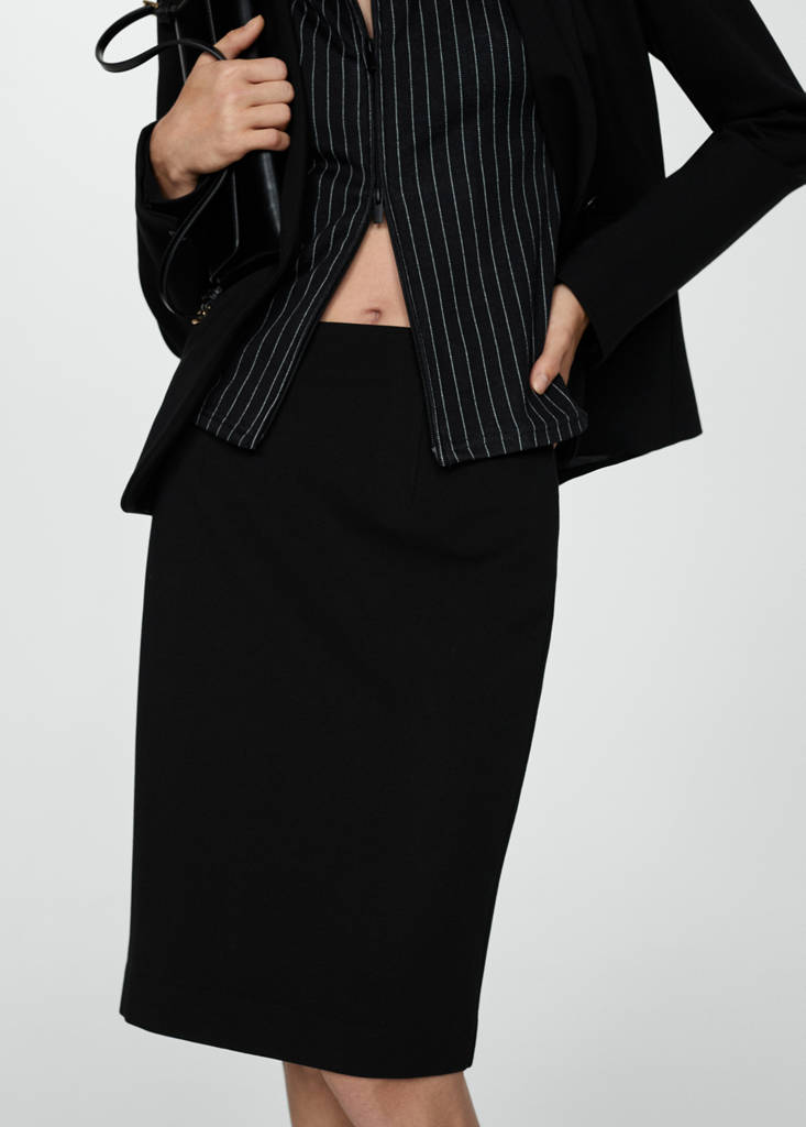 Pencil skirt with Rome-knit openingPrice historyInitial price struck through [€ 35.99 ]€ 35.99Current price [€ 23.99 ]€ 23.99-33%Select a colourBlackThe model is wearing size S and is 175cm tall.Select your sizeXXSNot available. I want it!XSNot available. I want it!SNot available. I want it!MNot available. I want it!LNot available. I want it!XLNot available. I want it!XXLNot available. I want it!DimensionsNotify mePunta di Roma knit fabric. Pencil design. Midi design. High waist. Invisible back zip fastening. Back slit detail. Total look. Office looks. Fitted designDetails, composition and careStore availability