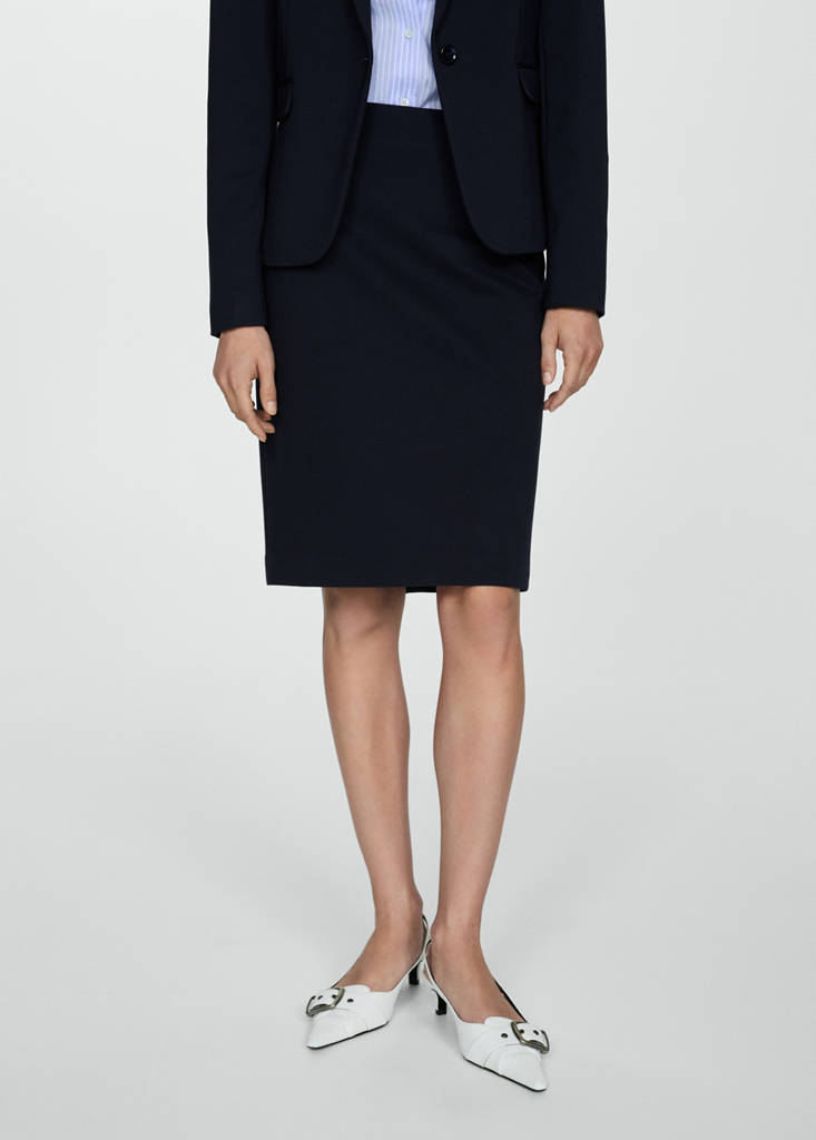 Punta di Roma knit fabric. Pencil design. Midi design. High waist. Invisible back zip fastening. Back slit detail. Total look. Office looks. Fitted design