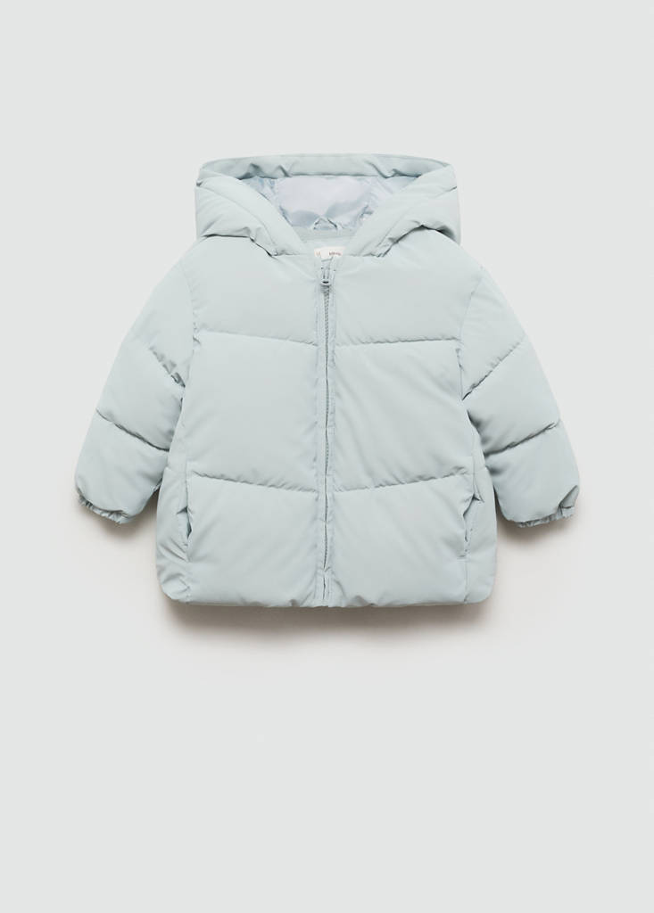 Gestepptes Design. Kapuze. Lange Ärmel. Gerades Design. Back to School. Fleece-Futter. Etikett für persönliche Daten. Reißverschluss auf der Vorderseite