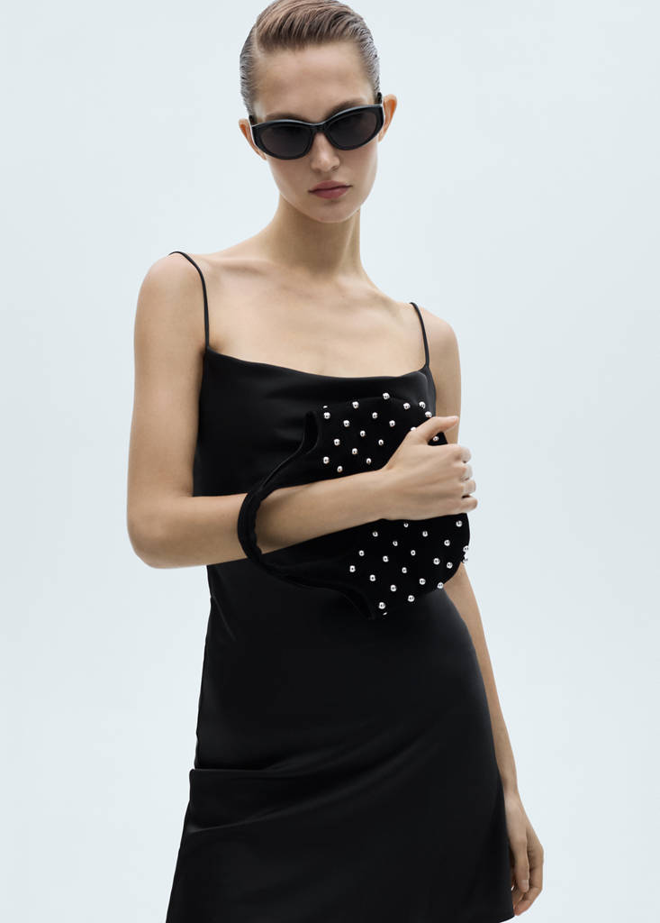 Leichter Stoff. Kollektion für Partys, Feierlichkeiten und Kommunionen. Kurzes Design. Slim Fit. Feine Träger. V-Ausschnitt