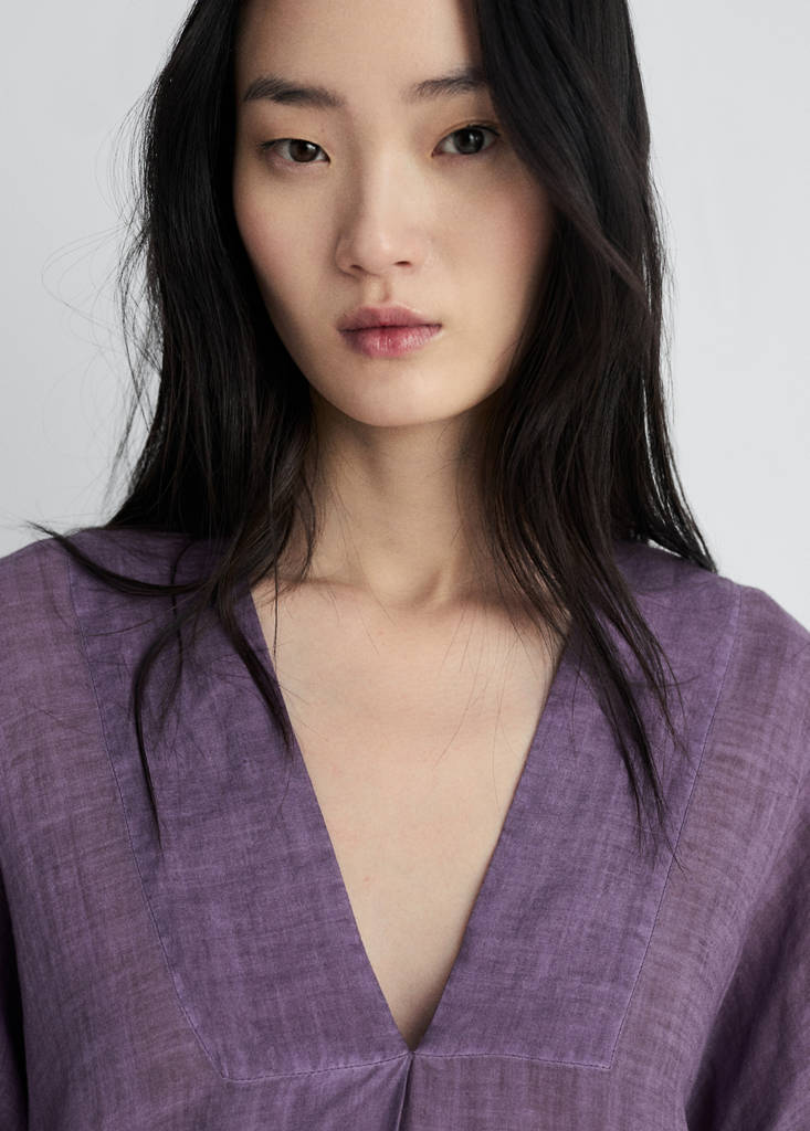 100 % Ramie. V-Ausschnitt. Lange Ärmel. Midi-Design. Ausgestellte Ärmel. Bietet Komfort und Bewegungsfreiheit. In verschiedenen Farben erhältlich