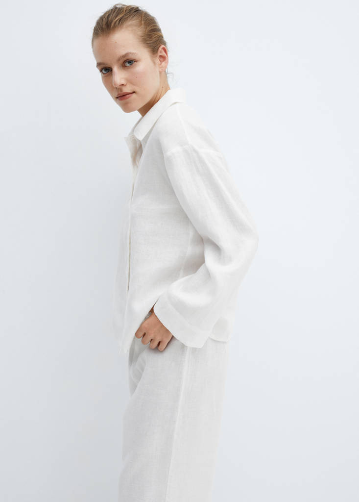 100 % Leinen. Gerades Design. Hemdkragen. Lange Ärmel. Verdeckter Knopfverschluss auf der Vorderseite. Total Look