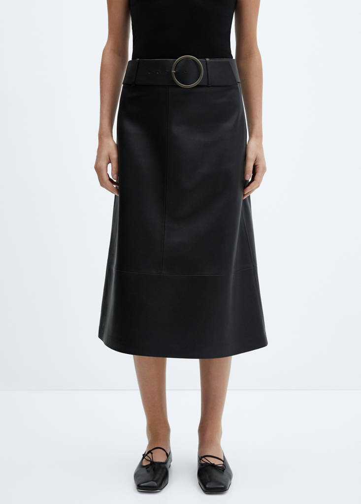 Fließender Stoff. Midi-Design. Gerades Design. Hohe Taille. Seitlicher Verschluss. Verstellbarer Gürtel. Ledereffekt. Ohne Innenfutter. Büro-Looks