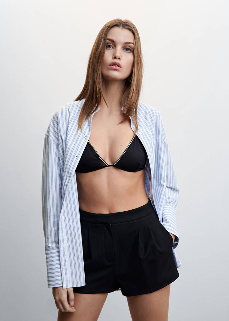 Camille x Mango ist eine Kollektion, die von der anglo-französischen Influencerin Camille Charrière entworfen wurde. Sie hat eine exklusive Kollektion von Kleidungsstücken und Accessoires kreiert, die vor allem aus Satin mit Glitzer und Transparenzen besteht und ideal für besondere Partynächte ist.
