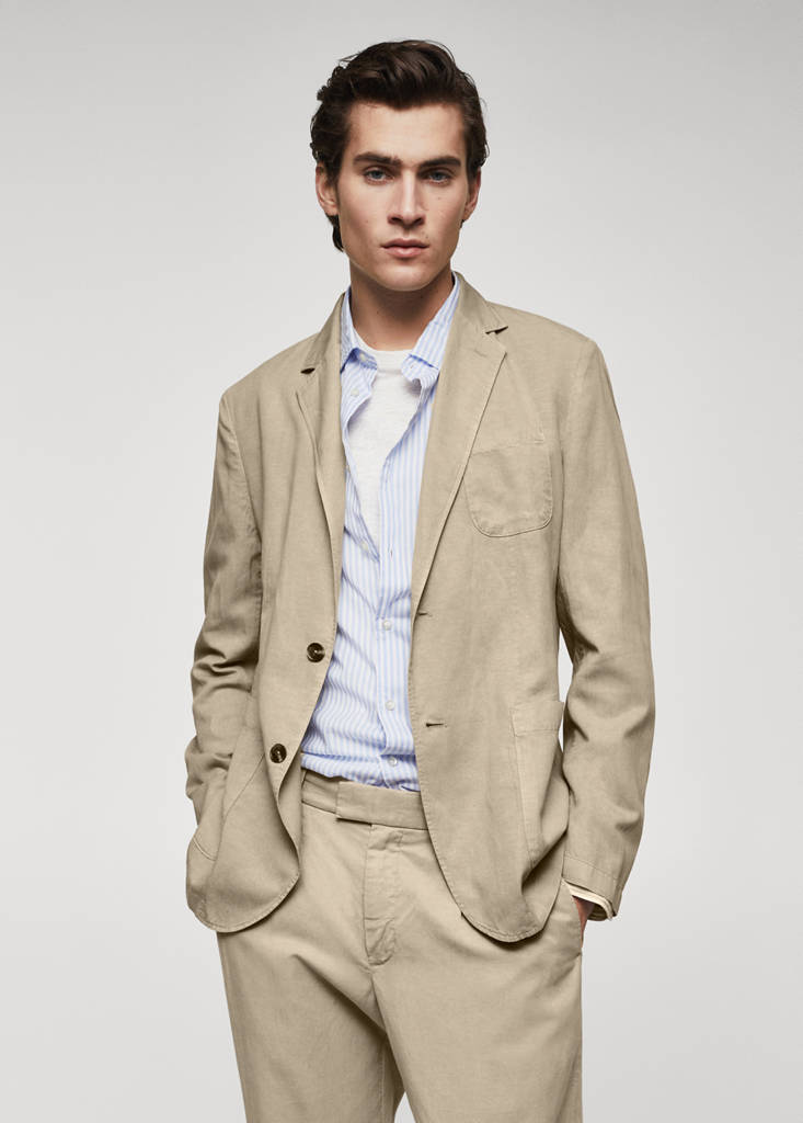 Slim Fit. Baumwoll-Leinen-Gemisch. Leichter Stoff. Fallendes Revers. Zwei Knöpfe am Vorderteil. Aufgesetzte Brusttasche. Zwei aufgesetzte Vordertaschen. Lange Ärmel. Ohne Innenfutter. Basics-Kollektion. Antoine Griezmann-Kampagne. Kleiner als üblich, es wird empfohlen, eine größere Größe zu kaufen.