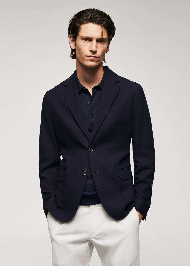 Slim Fit. 100 % Baumwolle. Baumwoll-Twill-Struktur. Leichter Stoff. Reverskragen. Zwei aufgesetzte Taschen vorne. Lange Ärmel mit Knopfmanschetten. Gerader Saum. Doppelter Rückenschlitz. Innentasche mit Knopfverschluss. Vorne gefüttert. Vorderer Verschluss mit Knöpfen