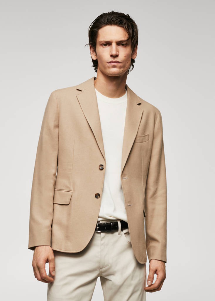 Slim Fit. 100 % Baumwolle. Baumwoll-Twill-Struktur. Leichter Stoff. Reverskragen. Zwei aufgesetzte Taschen vorne. Lange Ärmel mit Knopfmanschetten. Gerader Saum. Doppelter Rückenschlitz. Innentasche mit Knopfverschluss. Vorne gefüttert. Vorderer Verschluss mit Knöpfen